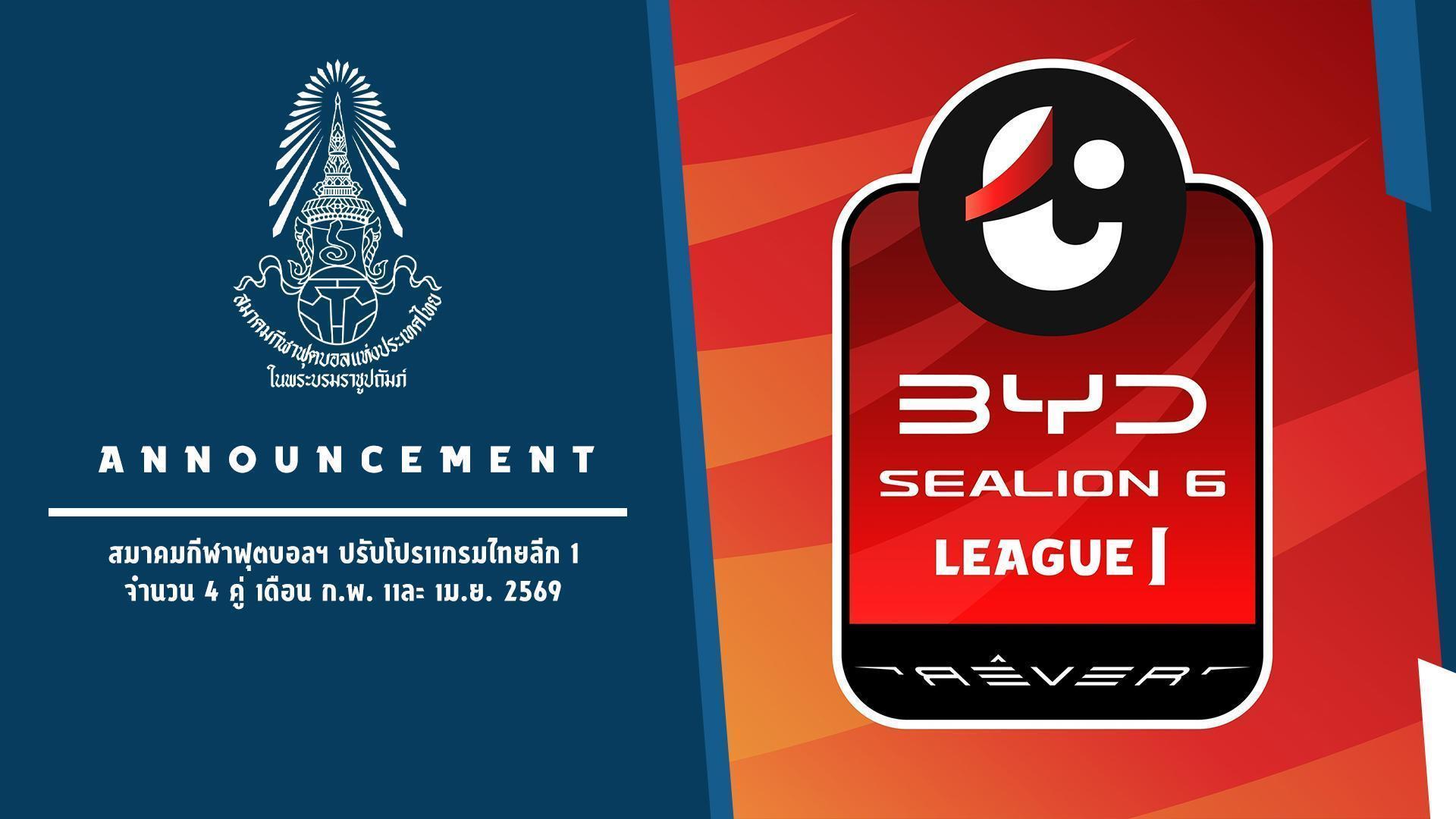 สมาคมกีฬาฟุตบอลฯ ปรับโปรแกรมไทยลีก 1 จำนวน 4 คู่ เดือน ก.พ. และ เม.ย. 2569